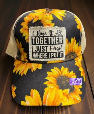 I Have It All Together Distressed Sunflower Criss Cross Ponytail Hat