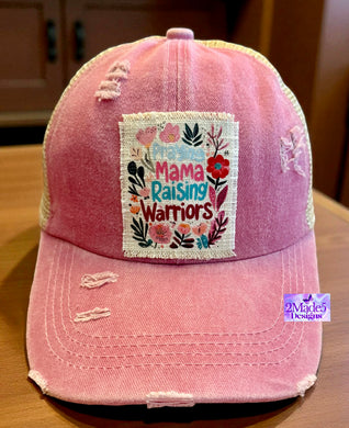 Praying Mama Raising Warriors Distressed Ponytail Hat