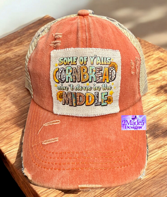 Some Of Y’alls Cornbread Ain’t Done In The Middle Distressed Sunset Criss Cross Ponytail Hat