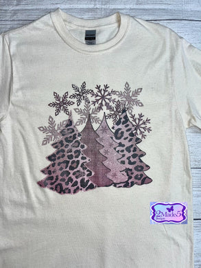 Pink Ombré Leopard Trees on Gildan natural prism shirt size Small